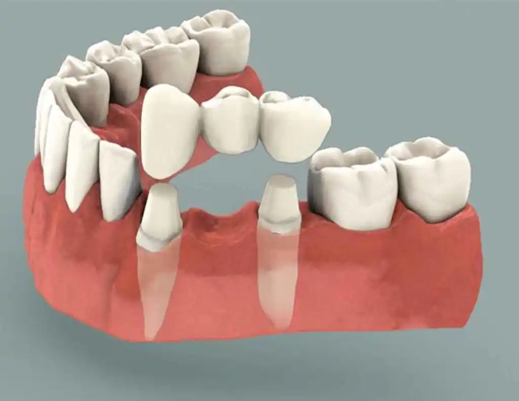 A dental bridge replaces one or more missing teeth by anchoring artificial teeth (pontics) to the adjacent natural teeth or implants. It “bridges” the gap left behind by missing teeth.